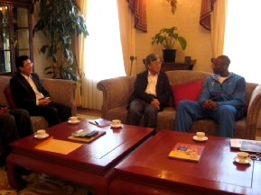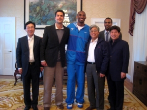 科比感謝張總領(lǐng)事邀請他來官邸作客,并愉快地憶及去年8月赴京參加北京奧運會的情景。科比表示,親身參加北京奧運會是他巨大的榮耀。在華期間,他初步領(lǐng)略到了絢麗多彩的中國文化和快速發(fā)展的中國社會,充分感受到了中國人民的友好情誼。他熱愛中國,希望早日重訪中國,進一步加深對中國的了解。同時,愿發(fā)揮自身影響力,為促進美中兩國青年間的相互溝通與交流,特別是為兩國弱勢兒童的福祉做些實事。