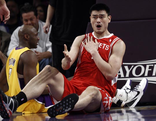 中新網(wǎng)5月7日電 北京時間今日,火箭和湖人的西部半決賽第二戰(zhàn)在斯臺普斯中心進行。這場比賽場面異常火爆,雙方都有球員因沖突下場。最終情緒不穩(wěn)的火箭客場以98-111輸給了湖人,總比分被扳成1-1平。姚明砍下12分10籃板,但被吹罰5次犯規(guī);阿泰25分,斯科拉12分小布13分巴蒂爾6分。湖人科比40分,加索爾22分。