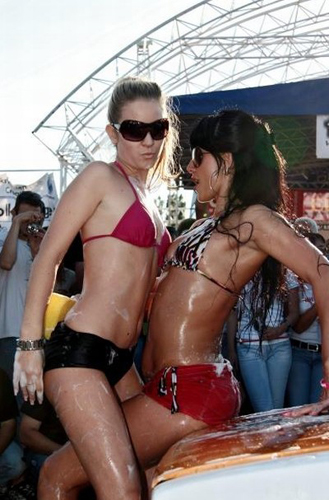 大眾改裝車(chē)展上,熱辣女郎互相潑水