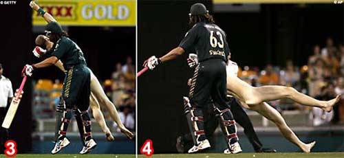 澳板球比賽“很黃很暴力” 球員棒擊裸奔者(圖)