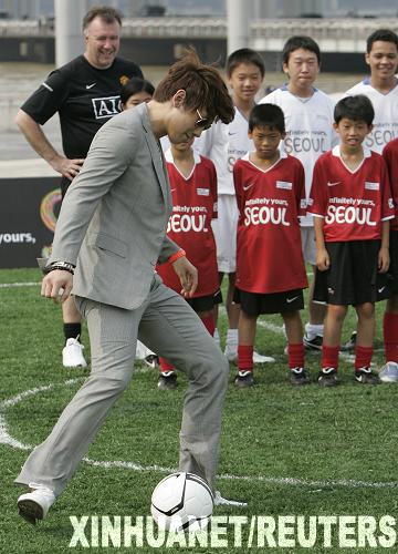 7月23日,英超曼聯(lián)隊(duì)的韓國球員樸智星在為孩子們展示運(yùn)球技巧。當(dāng)日,樸智星與韓國藝人Rain在首爾的一個(gè)足球訓(xùn)練營(yíng)為孩子們展示球技。樸智星所效力的曼聯(lián)隊(duì)于今日抵達(dá)首爾,繼續(xù)亞洲之行。球隊(duì)將于7月24日與首爾FC隊(duì)進(jìn)行一場(chǎng)友誼賽。新華社/路透