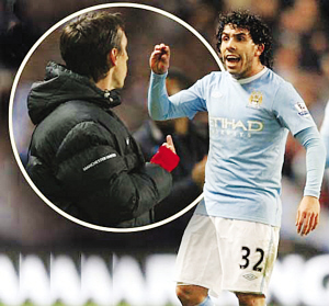昨天,英格蘭聯(lián)賽杯半決賽首回合進(jìn)行了一場(chǎng)曼徹斯特同城德比,結(jié)果曼城在第17分鐘就先被對(duì)方隊(duì)長(zhǎng)吉格斯率先破門的不利形勢(shì)下,憑借前曼聯(lián)舊將、阿根廷國(guó)腳前鋒特維斯在第40分鐘的點(diǎn)球、第65分鐘的頭球,最終在主場(chǎng)以2:1險(xiǎn)勝曼聯(lián)。值得關(guān)注的是,綽號(hào)“野獸”的特維斯此番面對(duì)“拋棄”他的老東家紅魔曼聯(lián)首度進(jìn)球,而且還是梅開二度。不過(guò),反咬紅魔快意復(fù)仇的“野獸”在進(jìn)球后帶有挑釁、示威意味的張狂慶祝動(dòng)作,卻引發(fā)了一場(chǎng)鬧劇。