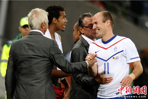 第76分鐘,埃托奧接隊(duì)友妙傳大力射門,皮球勢(shì)大力沉打在后衛(wèi)身上。第83分鐘,荷蘭隊(duì)卷土重來(lái)。替補(bǔ)登場(chǎng)的羅本接斯內(nèi)德妙傳轉(zhuǎn)身之后射門擊中立柱,亨特拉爾侯個(gè)正著輕松推射空門,將比分鎖定為2-1。荷蘭隊(duì)在獲得一場(chǎng)勝利的同時(shí),也鎖定了自己的小組頭名位置。