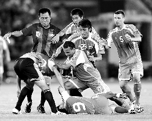 本報訊 (記者張磊)昨日下午3時,北京國安21名球員前往杭州備戰(zhàn)周日的比賽。上午,李章洙為周四沒有打滿全場的球員安排了一堂訓(xùn)練課,“為了讓隊員達(dá)到比賽狀態(tài)!敝行艊哺倍麻L羅寧也來到現(xiàn)場觀看訓(xùn)練,并與教練組在球場邊召開了工作會議,會議的核心是如何在后面的比賽中激發(fā)全體球員的激情!艾F(xiàn)在對教練組提出了更高的要求,考驗教練組智慧的時候到了!绷_寧說。