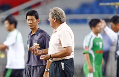 8月4日下午,剛剛獲得自己的中超首勝的阿里·漢正和球員們在訓練場上開著玩笑,突然,本來晴好的天氣突然變臉,狂風、暴雨在短短幾分鐘內(nèi)劈頭蓋臉地蹂躪著球場上的每一個人,本來笑哈哈的阿里·漢有點惱怒,他不得不和助手們一起躲進了場邊的雨棚。結(jié)束訓練后,雨還沒有停,濕透了的阿里·漢心情已經(jīng)好轉(zhuǎn),他還不知道自己已經(jīng)被足協(xié)處罰的消息。幾分鐘后,他再一次“透心涼”,記者把處罰結(jié)果第一時間傳達給他時,阿里·漢的臉立即陰沉了下來,并拒絕回答任何問題。他告訴翻譯,“我什么都不會說的!