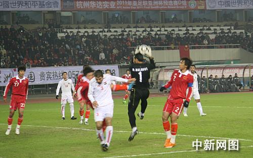 中新網(wǎng)1月7日電 昨日傍晚,2011年卡塔爾第15屆亞洲杯預(yù)選賽D組第5輪的首場(chǎng)比賽在杭州市黃龍?bào)w育場(chǎng)進(jìn)行,由中國(guó)隊(duì)主場(chǎng)迎戰(zhàn)敘利亞隊(duì)。經(jīng)過(guò)90分鐘的激戰(zhàn),雙方以0比0互交白卷,攜手晉級(jí)。第40分鐘杜威前場(chǎng)送出直塞,邵佳一反越位單刀射門,但浪費(fèi)了全場(chǎng)最好的一次機(jī)會(huì)。