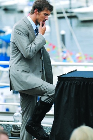 對菲爾普斯來說,戰(zhàn)勝奧尼爾似乎不那么簡單,因?yàn)樗谥暗能嚨溨信獋擞夷_,發(fā)布會上,他全程都用護(hù)具緊緊包裹著傷腳,但是菲爾普斯笑著說:“兵不厭詐,這個(gè)護(hù)具將會對奧尼爾造成困惑,他一定會迷惑我到底能發(fā)揮到幾成,哈哈,我們賽場上見。”