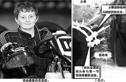 當(dāng)克里斯被送到南漢普頓綜合醫(yī)院搶救后,醫(yī)生發(fā)現(xiàn)他的傷勢非常嚴(yán)重。醫(yī)院的脊椎外科醫(yī)生達(dá)維斯回憶說:“當(dāng)時(shí),他的頭骨已經(jīng)與第一節(jié)頸椎分離,看上去好像隨時(shí)都可能從身上掉下來!