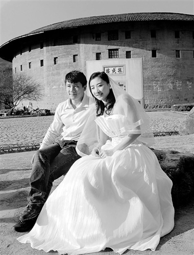 這張疑似婚紗照中,何雯娜身著白色婚紗,而陳一冰上身穿著淺色襯衫,下身的打扮卻很休閑,背景是振成樓。據(jù)何雯娜家人介紹,何雯娜全運會后利用假期回到龍巖,為永定拍了這組宣傳照,這也是何雯娜第二次為土樓做宣傳了!霸谂男麄髡掌陂g,何雯娜換穿了不止一套服裝,白色婚紗是最后一套!焙析┠饶赣H介紹說,“和陳一冰拍照是在拍攝結(jié)束后,并不是婚紗照。”