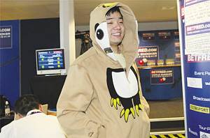 與比賽時(shí)西裝革履相比,昨天的丁俊暉更加多了一分童真。簡(jiǎn)單的牛仔褲,運(yùn)動(dòng)鞋,外加一件黃色熊貓頭外套,讓23歲的小暉看起來活力十足。面對(duì)記者,丁俊暉還被朋友們打趣把衣服拉索拉到了頭,蒙著頭的小暉被裹在衣服里面,掙扎的動(dòng)作引來一片笑聲。