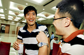 昨晚(26日),普陀區(qū)為該區(qū)輸送的優(yōu)秀運(yùn)動(dòng)員參加第十一屆全運(yùn)會(huì),在區(qū)政府舉行了出征送行會(huì),劉翔和其他優(yōu)秀運(yùn)動(dòng)員代表一起,出席了送行會(huì)。孫海平教練開玩笑說:“也別祝我們好成績了,像劉翔現(xiàn)在,平安順利就好了,我沒別的要求!