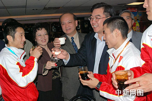 慶功會由大芝加哥地區(qū)華聯(lián)會副主席蔡扶時主持。華聯(lián)會主席劉紅說,中國隊這次取得了一金四銅的好成績,并有七人獲得參加北京奧運會的比賽資格,為祖國、為中國人民和海外華人華僑增了光,我們感謝你們。