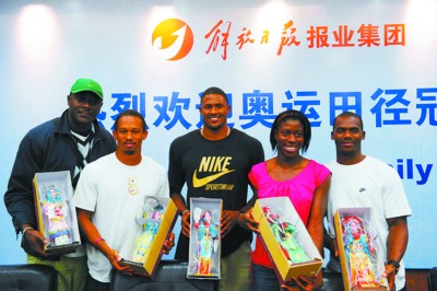 座談會上,還有北京奧運會男子4×100米冠軍成員,牙買加隊的弗雷德和卡特,北京奧運會女子400米金牌獲得者奧古魯格,雅典奧運會和北京奧運會兩屆女子三級跳冠軍姆邦哥。他們和奧利弗,都是第一批抵達上海參加黃金大獎賽的運動員,此次受到解放日報報業(yè)集團和解放日報領(lǐng)導(dǎo)的熱忱接待,并因收到了如穆桂英、孫悟空、趙云等京劇人偶,以及中國筷子等極具中國特色的禮物,而充滿驚喜。