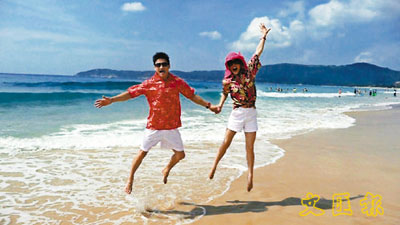該報稱,“國慶”前夕,從未到過三亞的楊威和楊云專程前來考察,對婚禮舉辦地點很滿意,當(dāng)?shù)鼗閼c公司承諾將致力于讓婚禮“浪漫得讓人心醉”。楊云從三亞考察完婚禮地點后,抑制不住將做新娘的喜悅心情,把與楊威在三亞海濱的甜蜜照片放到了博客上,著紅衣白褲情侶裝的一對金童玉女,映襯著藍天、碧海、麗日,濃得化不開的濃情蜜意,向世人訴說他們愛的羅曼史。