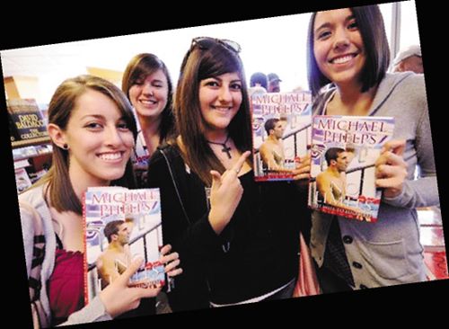 菲爾普斯昨日在洛杉磯簽售自己的新書(shū)《無(wú)極限:成功的意志》,上百名他的粉絲在書(shū)店門(mén)口排起了長(zhǎng)隊(duì),其中不乏眾多女性支持者,她們?cè)谫I(mǎi)到書(shū)后興奮地對(duì)著鏡頭展示。