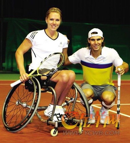 在荷蘭參加鹿特丹網(wǎng)球賽的納達(dá)爾日前抽空與與殘奧會(huì)輪椅網(wǎng)球冠軍維格爾一起練球,吸引了大量球迷現(xiàn)場觀戰(zhàn)。