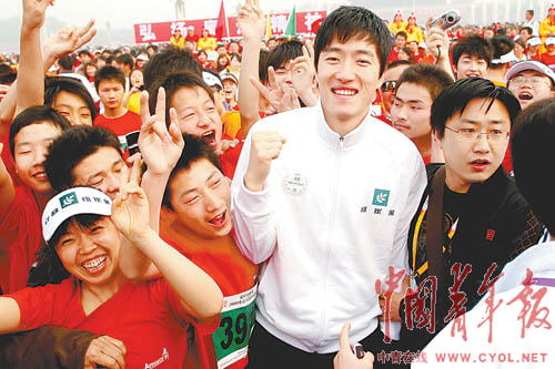 劉翔作為主辦方的代言人出現(xiàn)在主席臺(tái)上,原本他還要向北京智泉打工子弟學(xué)校的參賽學(xué)生贈(zèng)送自己簽了名的長(zhǎng)跑節(jié)T恤衫,但因?yàn)闊崆榈挠^(guān)眾幾乎引起擁擠而被改在賽后進(jìn)行,就連事先約好的采訪(fǎng)也被迫取消。即便如此,“劉翔”、“劉翔”的喊聲還是持續(xù)了很長(zhǎng)時(shí)間。