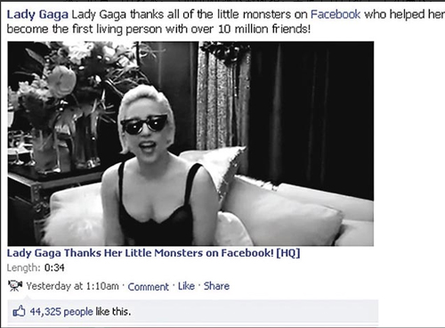中新網(wǎng)7月6日電 據(jù)香港“文匯報(bào)”消息,Lady Gaga人氣爆燈絕對(duì)不是空話。與不少明星一樣,Gaga也有利用社交網(wǎng)站與粉絲互動(dòng)。據(jù)悉,Lady Gaga在2月時(shí)已有500萬(wàn)名粉絲關(guān)注,當(dāng)時(shí)還比性感女星梅根·?怂股贁(shù)十萬(wàn),也比美國(guó)現(xiàn)任總統(tǒng)奧巴馬的700萬(wàn)名支持者要少。但Lady Gaga果然名不虛傳,以平均每天14萬(wàn)人關(guān)注的速度,至上周已錄得1千萬(wàn)的紀(jì)錄,比一直領(lǐng)先她的總統(tǒng)奧巴馬還要超前約100萬(wàn)票。獲得這一喜訊后,Gaga在另一社交網(wǎng)站寫道︰“多謝那么多小魔怪在Facebook追隨我。我有一千萬(wàn)個(gè)互相緊扣的朋友了!