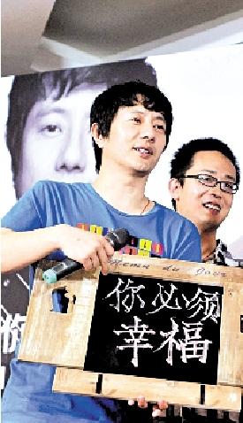 鄭鈞收到歌迷的祝福。本報(bào)記者 胡雪柏 攝