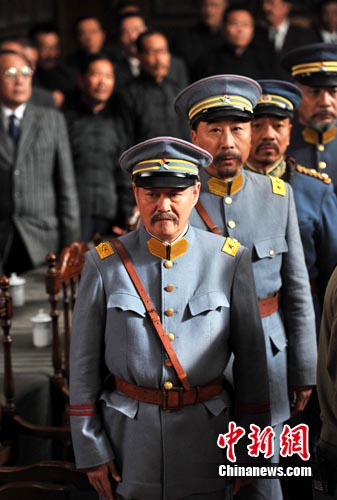 中新網北京10月5日電 (記者 應妮)中影集團年度大作《建黨偉業(yè)》轉戰(zhàn)天津,拍攝袁世凱宣誓就職大總統(tǒng)的戲份。周潤發(fā)飾演的袁世凱和趙本山飾演的段祺瑞人物造型也首度曝光,而小沈陽在電影中扮演的角色依舊是一個謎。