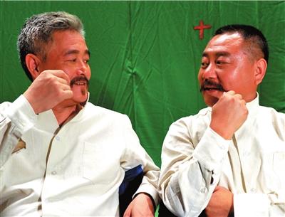 趙本山(左)和范偉在拍攝現(xiàn)場(chǎng)交談。張偉攝