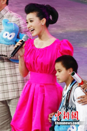 中新網(wǎng)11月1日電 為期184天的上海世博會(huì)于10月31日晚在上海落下了帷幕,閉幕式的文藝演出中志愿者成為了舞臺(tái)上絕對(duì)的主角。當(dāng)講述一群盲童參觀世博突遭大雨被園區(qū)志愿者層層接力護(hù)送的感人短片播放后,歌唱家譚晶懷抱著“海寶”手牽著短片中的盲童緩緩走到舞臺(tái)中央,隨后楊瀾、成龍、劉翔、李寧、金晶、林志玲、黃奕等明星志愿者擁抱其他孩子們陸續(xù)上臺(tái),志愿者之歌《世界》音樂(lè)悄然響起,譚晶攜手臺(tái)上臺(tái)下2000名志愿者動(dòng)情演唱,場(chǎng)面溫情而催人淚下,上演了世博閉幕式上最感人的一幕。