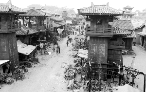 新造出來的一條街已經(jīng)被《木乃伊3》折騰得滿目瘡痍,到處都是斷壁殘垣,滿地爛瓦以及火燒過的痕跡,兩邊的店鋪和房子都已經(jīng)半倒塌,滿地的戰(zhàn)爭遺跡幾乎達到了讓人難以插腳的地步,最為壯觀的是街道盡頭的城門樓子,正面已經(jīng)全部被箭矢所覆蓋,滿地都是攻城用的圓木,還有兩輛攻城戰(zhàn)車也豎立其中。城墻上,一名老外劇組人員正在加固攻城的云梯,城樓上擺滿了點火用的丙烷桶。
