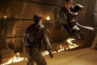 在上海拍完1946年的新年、“復(fù)活”的龍帝追殺女巫楊紫瓊的重頭戲后,《木乃伊3》近日又轉(zhuǎn)景到了橫店秦王宮。據(jù)導(dǎo)演羅伯·科恩在博客上介紹,橫店將回頭拍攝2000年前,龍帝與女巫之間的感情糾葛。因為強娶女巫不成,龍帝一怒之下屠城泄憤。據(jù)介紹,這場戲在整部電影中最終只有幾分鐘的鏡頭,不過,投資1.7億美元的《木乃伊3》劇組,還是認真地花幾天時間在橫店進行實地拍攝。而昨天,李連杰和楊紫瓊已經(jīng)紛紛進組趕拍。按照計劃,在結(jié)束橫店的拍攝后,《木乃伊3》劇組還將回到上海。本月28日,該片將結(jié)束在內(nèi)地的全部取景。