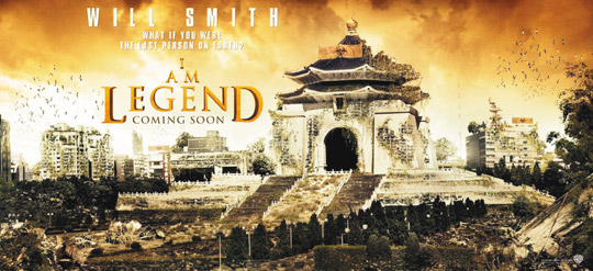 據(jù)臺(tái)灣《聯(lián)合報(bào)》報(bào)道,美國(guó)大片《我是傳奇》宣傳海報(bào)采取因地制宜策略,為讓世界各地的觀(guān)眾都感受到末日來(lái)臨的迫切危機(jī)感,出品該片的華納兄弟美國(guó)總公司挑選了香港、東京鐵塔、大阪市中心、倫敦大橋、首爾、巴黎鐵塔、雷克雅未克、馬德里西貝萊斯廣場(chǎng)與臺(tái)北中正紀(jì)念堂,呈現(xiàn)這些景點(diǎn)的毀壞荒涼情境。