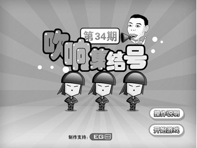 記者發(fā)現(xiàn),目前有數(shù)十萬(wàn)網(wǎng)友參與過(guò)互動(dòng)惡搞《集結(jié)號(hào)》,其惡搞方式就是拿馮小剛開涮,游戲稱名導(dǎo)馮小剛攜年度大片《集結(jié)號(hào)》再戰(zhàn)內(nèi)地電影市場(chǎng),但當(dāng)今觀眾的欣賞水平越來(lái)越高,要求也越來(lái)越高,導(dǎo)演面臨的壓力很大。究竟《集結(jié)號(hào)》能否吹響,請(qǐng)你助他一臂之力。而游戲規(guī)則就是:點(diǎn)擊鼠標(biāo)左鍵擊斃沖上陣地的群眾演員,同時(shí)注意不要打中摻雜在其中的明星演員。如果讓敵人沖上陣地或是誤殺一定數(shù)量的明星演員游戲即失敗,參與者的任務(wù)就是,請(qǐng)堅(jiān)守陣地直至集結(jié)號(hào)吹響。
