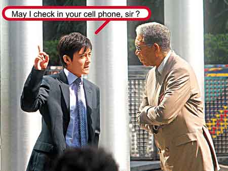 片中西裝筆挺的陳冠希,原來只扮演一名大廈接待員,在入口大堂出現(xiàn)的他,唯一的對白是對摩根-弗里曼說:“May I check in your cell phone,sir?(意譯為我可否收起你的電話?)”而能夠清楚看到他的鏡頭也僅得這三秒而已。