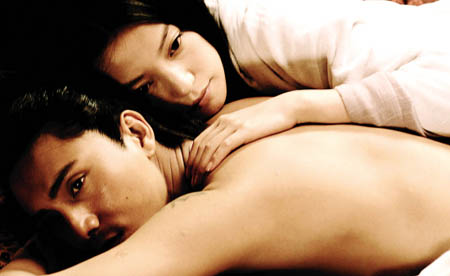確定于9月26日上映的《畫皮》,昨日披露了陳坤和趙薇兩人的“激情照”。盡管此前在上海電影節(jié)期間曝光海量劇照的時候,記者已經(jīng)目睹過陳坤和周迅、趙薇的“激情照”,但是昨日披露的兩張照片的尺度還是讓人大跌眼鏡。照片中,陳坤和趙薇含情脈脈,而陳坤身上的文身也相當搶眼。