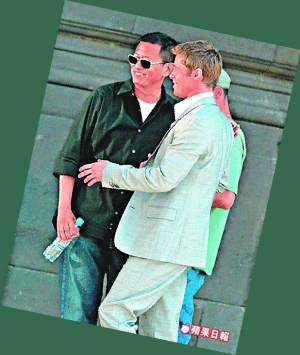 在國(guó)際影壇頗具知名度的王家衛(wèi),與皮特早已相識(shí),去年二人更合作拍攝一日本電話廣告,并由張叔平擔(dān)任美指;ハ嘈蕾p的兩人一直希望能在電影方面合作,可惜還沒(méi)遇到合適劇本。前天陪伴女友茱莉出席活動(dòng)的皮特,得悉女友新作《調(diào)包嬰兒》和王家衛(wèi)的《東邪西毒》首映禮,均安排在同日及同一家戲院舉行,他便賣(mài)人情先帶茱莉及《調(diào)包嬰兒》導(dǎo)演伊斯特伍德,提早于晚上約7時(shí)到戲院為王家衛(wèi)撐場(chǎng),然后再于9時(shí)半出席茱莉的新作首映禮。