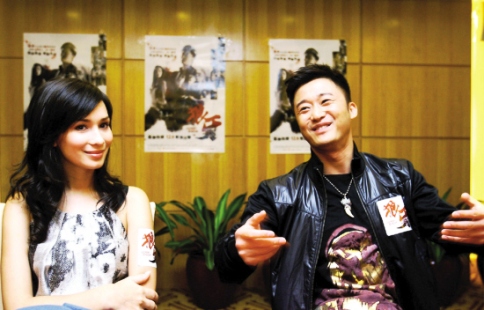 女主角Celina Jade聽(tīng)吳京(右)訴說(shuō)導(dǎo)演苦