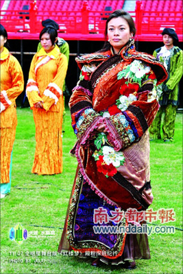 “好男”張殿菲演賈寶玉,《武林外傳》“佟掌柜”閆妮演薛寶釵,斯琴高娃分飾賈母與劉姥姥,溫碧霞、吳佩慈加盟“金陵十二釵”,包涵京劇、昆曲、舞蹈、越劇、歌唱等眾多元素……這些都不是舞臺(tái)劇《紅樓夢(mèng)》的最大噱頭,花團(tuán)錦簇的服裝才是第一主角。港臺(tái)媒體對(duì)這場(chǎng)大戲的報(bào)道重點(diǎn)是:飾演元春的臺(tái)灣明星吳佩慈不敵十公斤重的頭飾,在演出謝幕時(shí)失去重心整個(gè)人蹲在臺(tái)階上,相當(dāng)狼狽。早有觀看現(xiàn)場(chǎng)的網(wǎng)友質(zhì)疑,“吳佩慈扛得動(dòng)那身衣服和頭飾嗎?像要壓趴下了。” (記者 徐詞 實(shí)習(xí)生 王甜彬)
