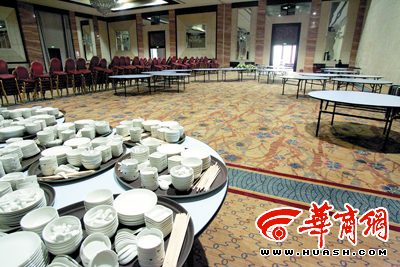 昨日下午,記者來到了香格里拉大酒店,田亮要結(jié)婚的事情已在該酒店傳開,工作人員都在談?wù)撚嘘P(guān)田亮婚禮的事情。而在田亮婚宴的第一宴會廳,記者看到之前為一家房地產(chǎn)公司搭建的舞臺已全部拆掉,大廳已經(jīng)開始重新布置。一位酒店工作人員告訴記者,他們只知道29日將在這里舉行一場婚宴,已經(jīng)確定的是43桌,昨晚已經(jīng)開始布置婚宴現(xiàn)場,準備29日當天所使用的餐具。