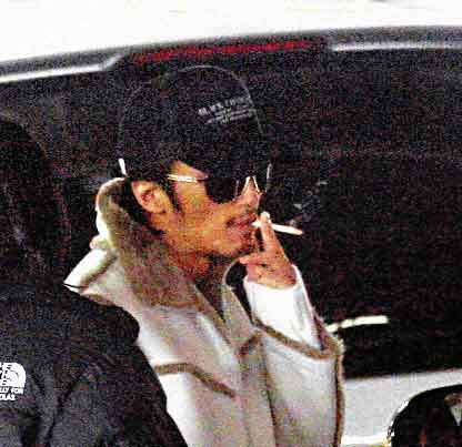 戴上墨鏡的芝身穿大衣,蹺同樣戴上黑超的霆鋒,在多名身材高大的保安開路下離開。霆鋒上車前急不及待叼煙狂吸,似乎急于“充電”。