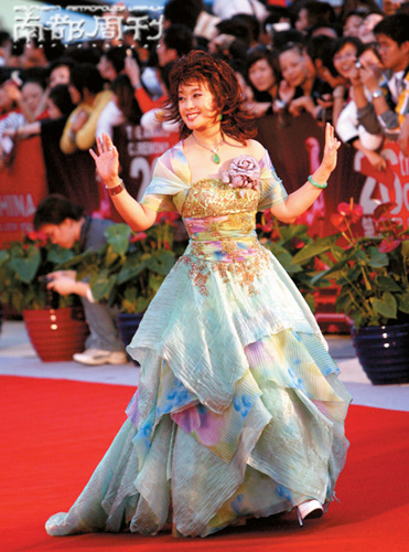 上榜理由:走在金雞獎(jiǎng)?lì)C獎(jiǎng)禮的紅地毯上,劉曉慶應(yīng)該比任何人能感受得到時(shí)代的變化,她已經(jīng)不止一次參加這個(gè)頒獎(jiǎng)禮。但對(duì)于劉曉慶來說,也許歲月永遠(yuǎn)停留在美好的80年代,紅地毯著裝意味著舞臺(tái)裝——這是她的選擇。做工拙劣的裙子完全襯不起她在演藝事業(yè)上的成就,復(fù)雜得說不清道不明的各個(gè)細(xì)節(jié)互相排斥,印染面料裙擺看起來像一堆破布。