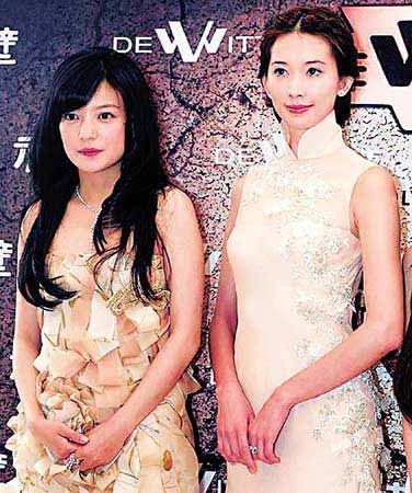 點(diǎn)評(píng):先說(shuō)下午的發(fā)布會(huì)上,趙薇一身粉桃紅及膝中袖裙子,顏色挺好看的,看著很舒服,奈何領(lǐng)子太窄,顯出趙薇肩膀過(guò)寬,加之整件衣服寬松沒(méi)腰身,說(shuō)得好聽(tīng)是“韓國(guó)風(fēng)”,說(shuō)得不好聽(tīng)就像孕婦裝;而林志玲可真會(huì)吸引人眼光,一件禮服都弄個(gè)中西合璧,上身是旗袍式,下身是飄逸的西裙,而背后更有看頭,半透明裝顯露大好身材。