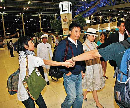 為婚禮有備而戰(zhàn)的嘉玲,前晚和偉仔到達(dá)曼谷機(jī)場后,由助手陪同出關(guān),一對準(zhǔn)新人心情大好,笑容滿面,其后乘坐機(jī)場小車出機(jī)場,登上酒店車直駛曼谷的杰頂上魚翅大快朵頤。
