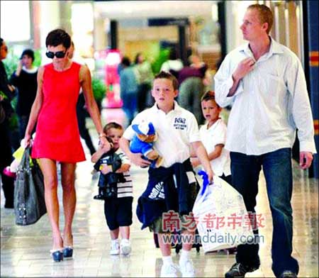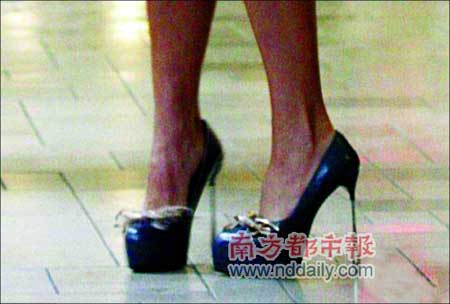 貝克漢姆陪同維多利亞在紐約的Macy商場(chǎng)出席旗下香水新品發(fā)布會(huì),維多利亞穿著的黑色長(zhǎng)靴就像褲子一樣長(zhǎng),不過最令人驚奇的是它根本就沒有“鞋跟”,走起路來完全是靠著前腳掌支撐,后腳跟完全是懸在半空中的,因此老公貝克漢姆全程“護(hù)駕”愛妻,惟恐維多利亞不慎摔倒。