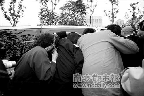 前日下午,國內(nèi)演藝界人士前往謝晉追悼會,向這位曾是幾代人精神坐標的著名導(dǎo)演做最后的告別。沒有想到的是,一個原本充滿悲情的場面最后卻出現(xiàn)令人遺憾的一幕:除了來向謝晉致意的人們,更有一些來追星的、來湊熱鬧的,甚至來偷記者相機的……演員范冰冰、趙薇更是被人踩、抓,要使出渾身解數(shù)才能走進謝晉的靈堂,范冰冰更被指與媒體發(fā)生沖突,昨日她的經(jīng)紀人向本報表示:現(xiàn)場確實太混亂。