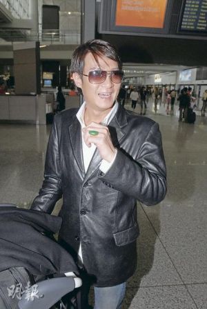 劉錫明風(fēng)騷返港,擁有幸福家庭令他神采飛揚(yáng)。