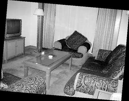 而在劇中和陳好演對(duì)手戲的“呂布”何潤(rùn)東待遇就差點(diǎn),和記者同住在影視城賓館,不過記者住的是標(biāo)房,他住的是套房。記者剛?cè)胱r(shí),服務(wù)員就熱情介紹:“最近這段時(shí)間,何潤(rùn)東和陸毅都住在我們這里,他們都是老顧客了,很親切的,遇見我們都會(huì)朝我們微笑、打招呼!焙螡(rùn)東所住的套房,每層只有一間,掛價(jià)一千元,打折后是388元。記者昨天進(jìn)了11層的唯一一間套房——409房查看一番。