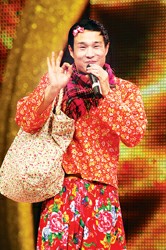 無獨(dú)有偶,小沈陽本月7日晚在北京也上演過一場“假鬧”。當(dāng)時,小沈陽身披袈裟扮演唐僧,和妻子沈春陽扮演的女兒國國王在臺上打情罵俏,極盡搞怪搞笑之能事。演出中途,有個身穿黑衣白褲的女“粉絲”沖上舞臺強(qiáng)吻小沈陽,突然,女“粉絲”的假發(fā)套脫落,原來是男扮女裝的小沈陽同門師兄弟小龍。這又是一起故意制造的娛樂噱頭。