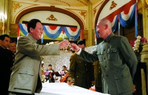 雖只有一場(chǎng)戲、三句臺(tái)詞,但身著深藍(lán)色軍裝的李連杰依然一絲不茍地拍了不下5條。據(jù)李連杰介紹,他扮演的陳紹寬原是國(guó)民黨海軍上將,在抗日戰(zhàn)爭(zhēng)中立下汗馬功勞,但不愿參加內(nèi)戰(zhàn),“中國(guó)人打中國(guó)人?這事我做不得”,最后向蔣介石遞交辭呈,“卸甲歸田,回福建養(yǎng)老去”。李連杰片酬高達(dá)上千萬(wàn)美元,但零片酬參與該片一方面是感謝中影集團(tuán)長(zhǎng)期對(duì)壹基金的支持,另外一方面他也認(rèn)為“陳紹寬反戰(zhàn)挺像我的,我也是個(gè)愛(ài)好和平的人!绷硗猓透露《建國(guó)大業(yè)》上映后,每張電影票將有1分錢(qián)進(jìn)入壹基金。