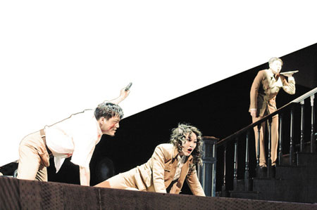 相比之下,在表現(xiàn)四個(gè)嫌疑人之間勾心斗角的某些橋段中,舞蹈就比打斗來得詼諧許多。有一段,其余三人一邊扭著好玩的倫巴,一邊卻在拼命詆毀吳志國(guó):“吳部長(zhǎng)干嘛去了?人家是部長(zhǎng),官高一級(jí)壓死人嘛!”記者 陳宇浩