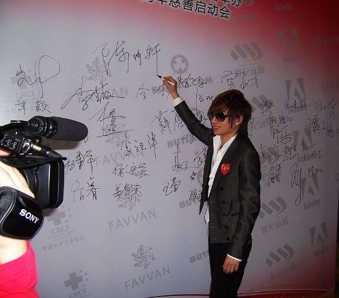 中新網(wǎng)5月8日電 5月7日,備受矚目的新人歌手陳爍軒和歌手李琛一起出席了由世紀(jì)遠(yuǎn)洋主辦、ADOBE和中科希望協(xié)辦的紀(jì)念汶川地震一周年慈善活動(dòng);顒(dòng)中,陳爍軒和李琛作為慈善拍賣(mài)大使為拍賣(mài)品簽名,并呼吁大家熱心慈善,關(guān)愛(ài)生命。