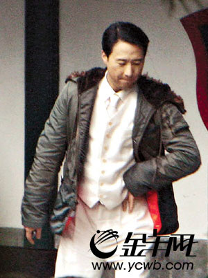 為免造型曝光,劇組人員相當(dāng)小心,所有有可能被拍攝到的位置都以布幕封好。但百密一疏,在畫(huà)舫齋旁邊長(zhǎng)廊盡頭,記者守候了一會(huì),突然看見(jiàn)一名身穿白色西裝加軍綠色外套的男子出現(xiàn),原來(lái)正是穿上戲服的黎明。