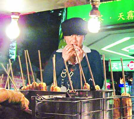 稍晚她回飯店休息片刻,果然大開“食戒”,先和工作人員去雙城街吃意大利菜,又意猶未盡直奔林森北路逛夜市,試吃路邊攤的水煮花生時,還大喊“好好吃喔”!